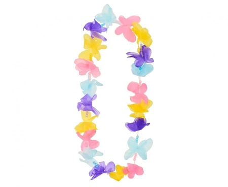 Naszyjnik hawajski „Motylki” to kolorowy naszyjnik z poliestru o średnicy 45–50 cm, sprzedawany po 1 sztuce. Przeznaczony jako element stroju i rekwizyt na imprezy tematyczne: hawajskie party, wieczory panieńskie, urodziny oraz do fotobudek i sesji zdjęciowych.