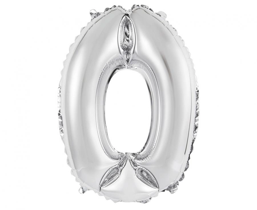 Balon foliowy "Cyfra 0", srebrna, 35 cm