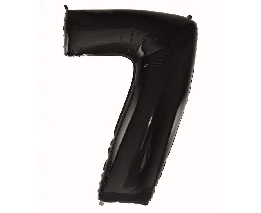 Balon foliowy w kształcie cyfry 7, kolor czarny, rozmiar po napompowaniu 92 cm. Pojedyncza sztuka z kolekcji Beauty&Charm (GoDan S.A.). Przeznaczony do napełnienia helem — przy napełnieniu powietrzem nie będzie się unosić. Sprawdzi się na urodzinach, rocznicach i wieczorach panieńskich.