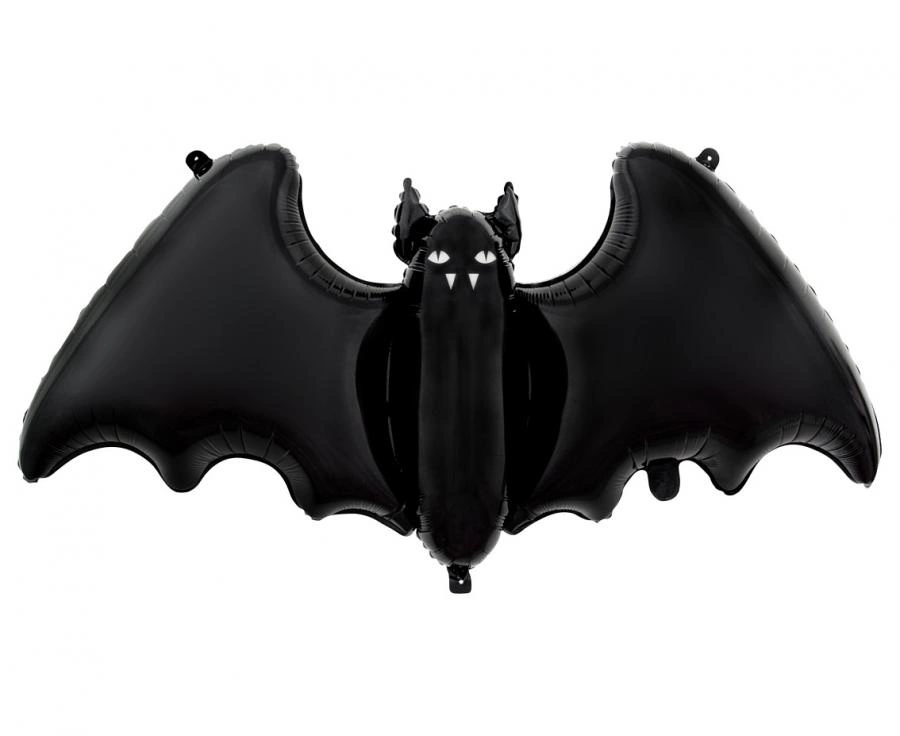 Balon foliowy w kształcie nietoperza, kolor czarny, w rozmiarze 46×100 cm. Jedna sztuka od producenta Godan S.A. Można napełnić helem lub powietrzem. Sprawdzi się na Halloween, imprezy tematyczne, wieczory panieńskie z motywem mrocznym oraz jako element tła do zdjęć.