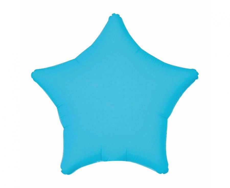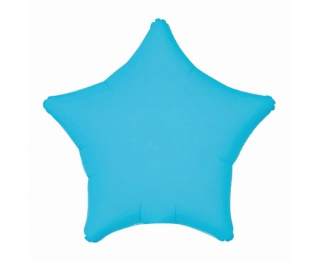 Balon foliowy w kształcie gwiazdy o średnicy 48 cm (19") w kolorze fluor niebieskim, z nadrukiem gwiazdy. Produkt przeznaczony do pompowania powietrzem — nadaje się jako element dekoracji stołu, tła do zdjęć lub do komponowania aranżacji na wesele, wieczór panieński, urodziny, baby shower, Halloween czy Boże Narodzenie.