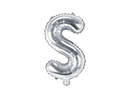 - Balon foliowy metalizowany Litera ''S'' w kolorze srebrnym, wysokość przed napompowaniem ok. 40 cm (16''), wysokość po napompowaniu ok. 35 cm (14'') Do napomowania powietrzem.