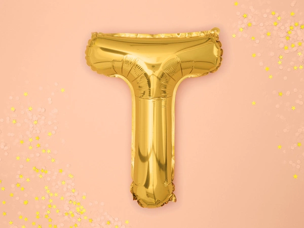 Wzbogać swoją imprezę o odrobinę złotego blasku z naszym balonem foliowym w kształcie litery "T". Zamów teraz i spraw, aby Twoje wydarzenie było niezapomniane!