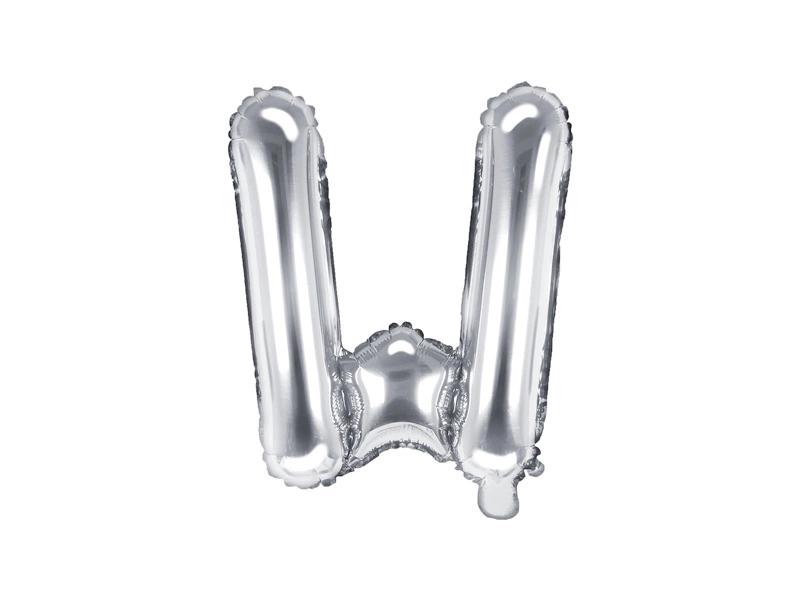 - Balon foliowy metalizowany Litera ''W'' w kolorze srebrnym, wysokość przed napompowaniem ok. 40 cm (16''), wysokość po napompowaniu ok. 35 cm (14''). Do napomowania powietrzem.