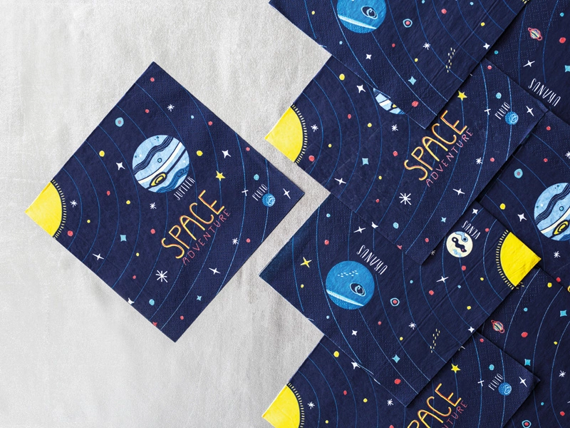 - Aby w pełni wykorzystać kosmiczny motyw, połącz serwetki z innymi dekoracjami w podobnym stylu, takimi jak balony, girlandy czy obrusy z motywem kosmosu.