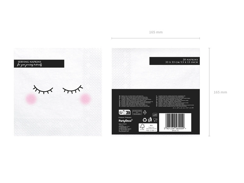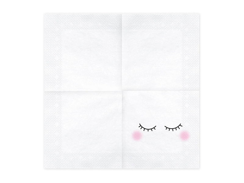 Kolor: Biały z nadrukiem buźki Rozmiar: 33 x 33 cm (po rozłożeniu), 16,5 x 16,5 cm (po złożeniu) Materiał: Papier