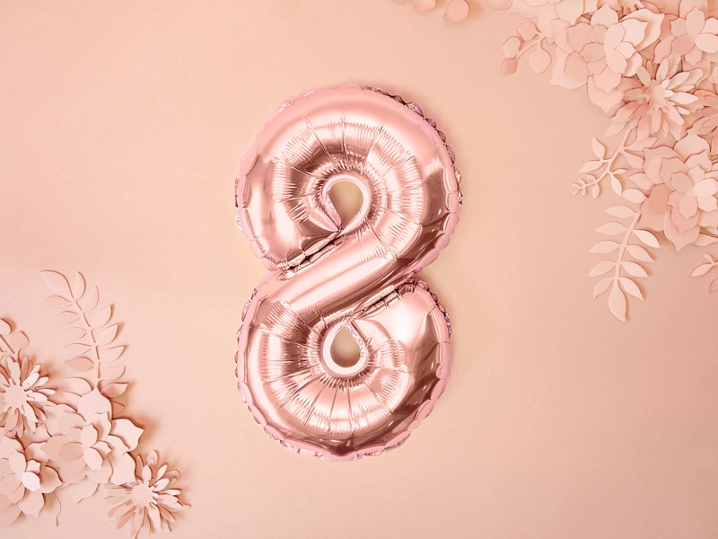 Chcesz, aby Twoja impreza była pełna blasku i elegancji? Wybierz nasz balon foliowy w kształcie cyfry "8" w kolorze różowego złota! To idealny dodatek na urodziny, rocznice, wieczory panieńskie i wiele innych okazji. Dzięki niemu Twoje wydarzenie nabierze wyjątkowego charakteru.