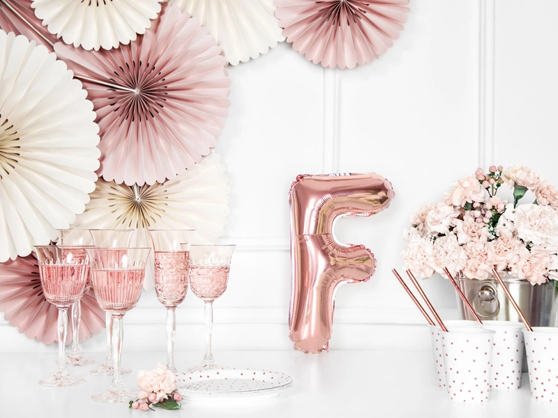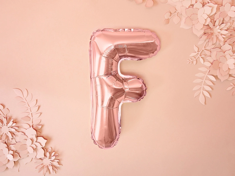 Zamów nasz balon foliowy w kształcie litery "F" w kolorze różowego złota już dziś i dodaj swojej imprezie odrobinę luksusu i blasku. Spraw, aby Twoje wydarzenie było niezapomniane!