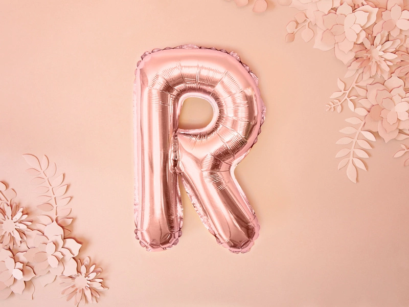 Nie czekaj! Zamów nasz balon foliowy w kształcie litery "R" w kolorze różowego złota i dodaj swojej imprezie wyjątkowego blasku i elegancji!