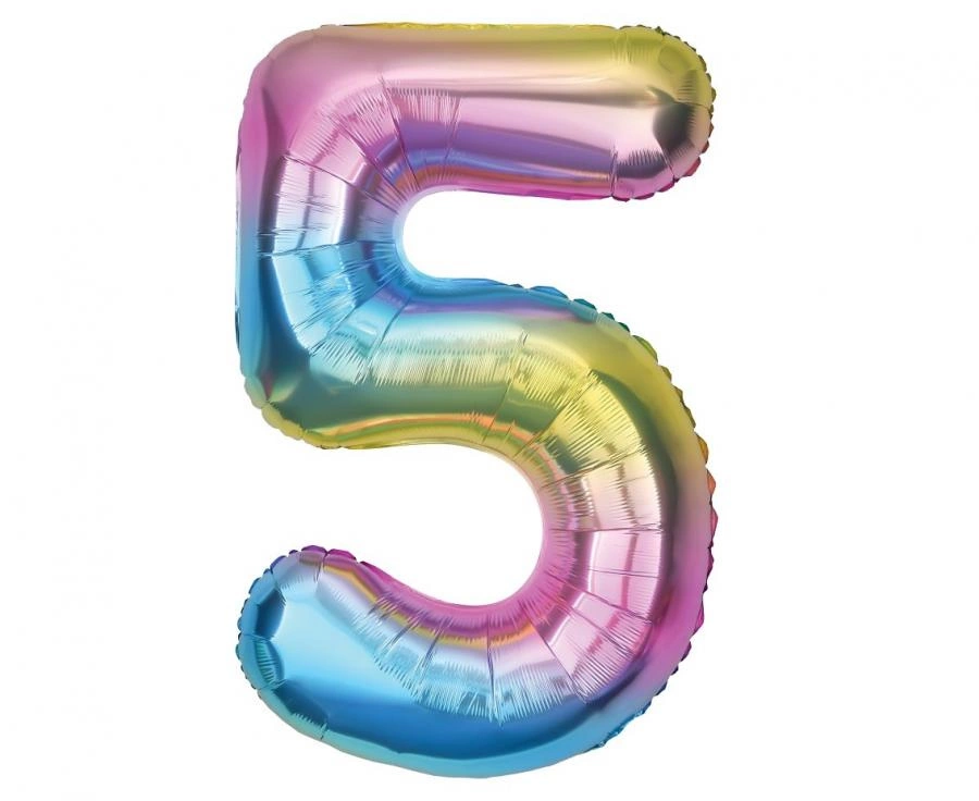Balon foliowy Cyfra 5, tęczowa, 85 cm