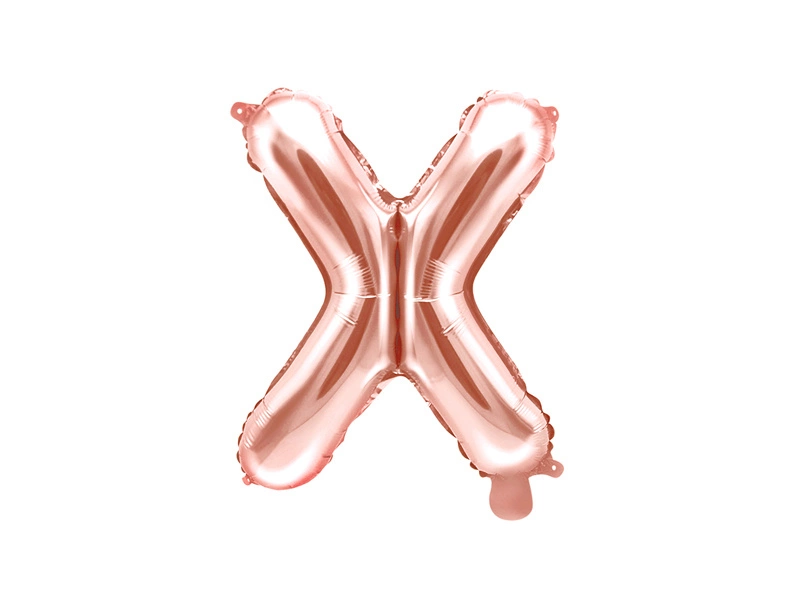 - Balon foliowy metalizowany Litera ''X'' w kolorze różowego złota, wysokość przed napompowaniem ok. 40 cm (16''), wysokość po napompowaniu ok. 35 cm (14''). Do napomowania powietrzem.