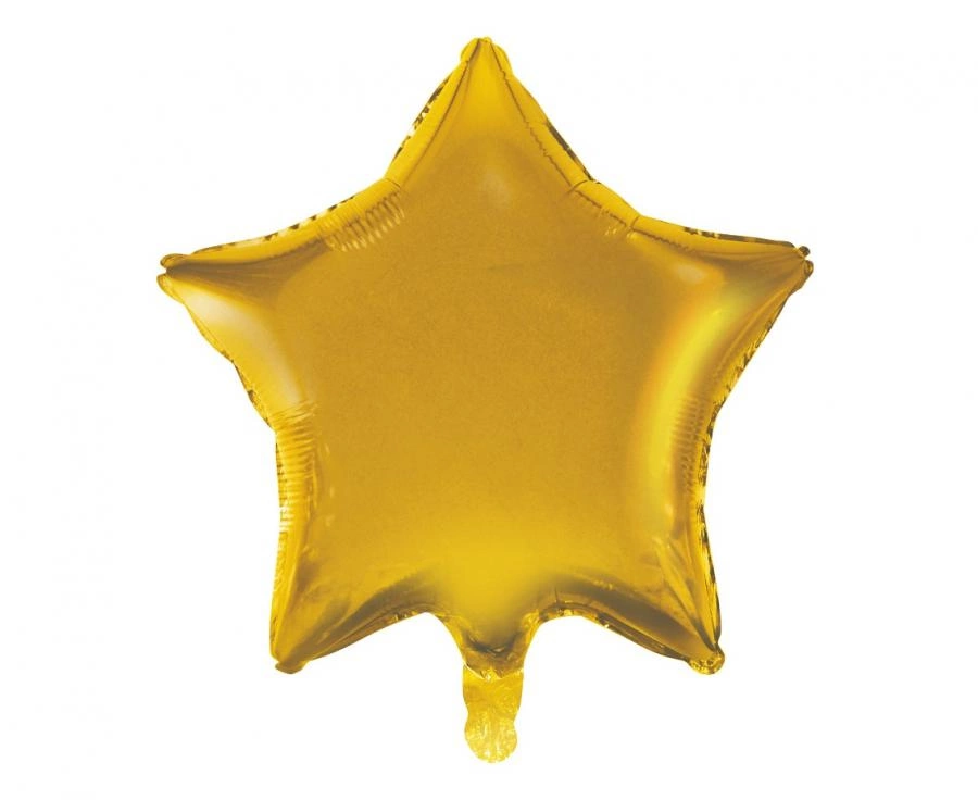 Balon foliowy w kształcie gwiazdy, złoty matowy, rozmiar 19" (ok. 44 cm). Opakowanie zawiera 1 sztukę. Produkt przeznaczony do napełnienia helem — po napełnieniu unosi się; napełniony powietrzem nie będzie się unosić. Sprawdzi się na wesela, wieczory panieńskie, urodziny, baby shower i świąteczne aranżacje.