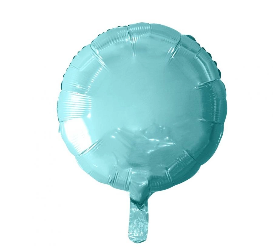 Balon foliowy okrągły 18" (ok. 46 cm) w kolorze jasnoniebieskim, 1 sztuka, producent Godan S.A. Produkt przeznaczony głównie do napełnienia helem — przy napełnieniu powietrzem nie będzie się unosić. Nadaje się jako pojedynczy akcent dekoracyjny na wesele, wieczór panieński, urodziny, baby shower i inne okazje.