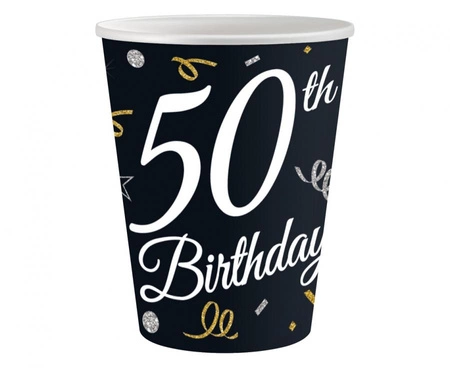 Kubeczki papierowe 50 Birthday, 250 ml/ 6 szt.