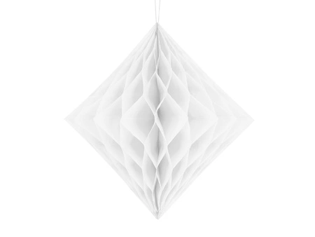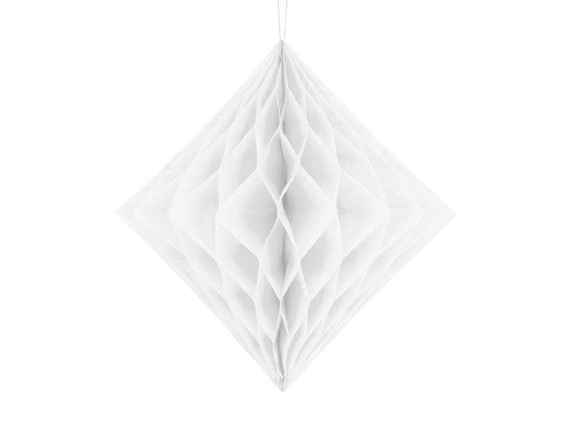 Chcesz dodać odrobinę elegancji i stylu do swojej imprezy? Nasz biały diament bibułowy o wysokości 30 cm to idealne rozwiązanie! Doskonale sprawdzi się na weselach, wieczorach panieńskich, urodzinach, Halloween, baby shower, Bożym Narodzeniu, Walentynkach i wielu innych okazjach. Ta wisząca dekoracja z pewnością przyciągnie wzrok i doda wyjątkowego uroku Twojemu wydarzeniu.