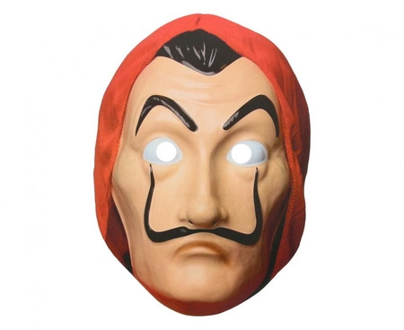 Maska papierowa „Dom z Papieru” przedstawia charakterystyczny wzór Salvadora. Wykonana z papieru, o wymiarach 21 x 31 cm i uniwersalnym rozmiarze, z mocowaniem na elastycznej gumce. Przeznaczona na imprezy tematyczne, karnawał, cosplay, Halloween czy wieczór panieński — lekka i łatwa w założeniu.