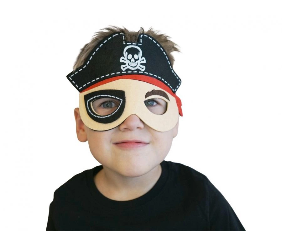Maska piracka dla dzieci • Wykonana z miękkiego filcu • Idealna na imprezy tematyczne • Bezpieczna dla dzieci powyżej 3 roku życia • Wymiary: 19,5 cm x 13 cm