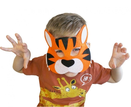 Maska tygrysa dla dzieci • Wymiary: 20 cm x 14 cm • 100% filc • Przeznaczenie: dla dzieci • Wiek: 3+ lata