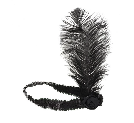 Opaska na głowę „Retro” z piórem w kolorze czarnym to pojedyncze akcesorium od producenta Godan, przeznaczone do stylizacji w klimacie lat 20. Idealna na wieczór panieński, karnawał, wesele retro, bale tematyczne i sesje zdjęciowe. Elastyczny, uniwersalny obwód ułatwia szybkie dopasowanie.