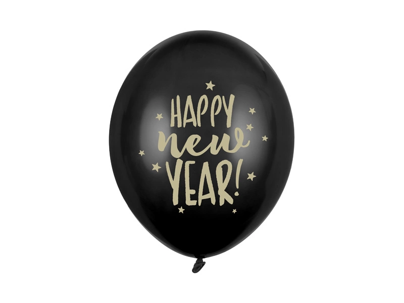 - Balony Strong w kolorze Pastel Black ze złotym dwustronnym nadrukiem Happy New Year, średnica 30 cm (1 op. / 6 szt.)