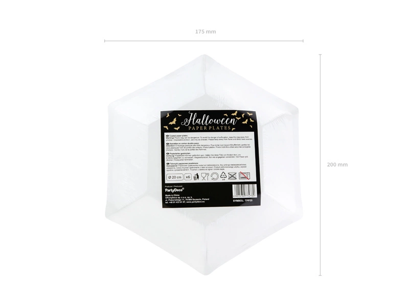 Przygotuj się na niezapomnianą imprezę z naszymi talerzykami Trick or Treat! Te wyjątkowe talerzyki, idealne na Halloween, zachwycą Twoich gości swoim eleganckim designem w kolorze czarnym ze złotym wzorem. Wykonane z papieru, są nie tylko stylowe, ale i przyjazne dla środowiska. Średnica 20 cm sprawia, że są doskonałe do serwowania przekąsek i deserów.