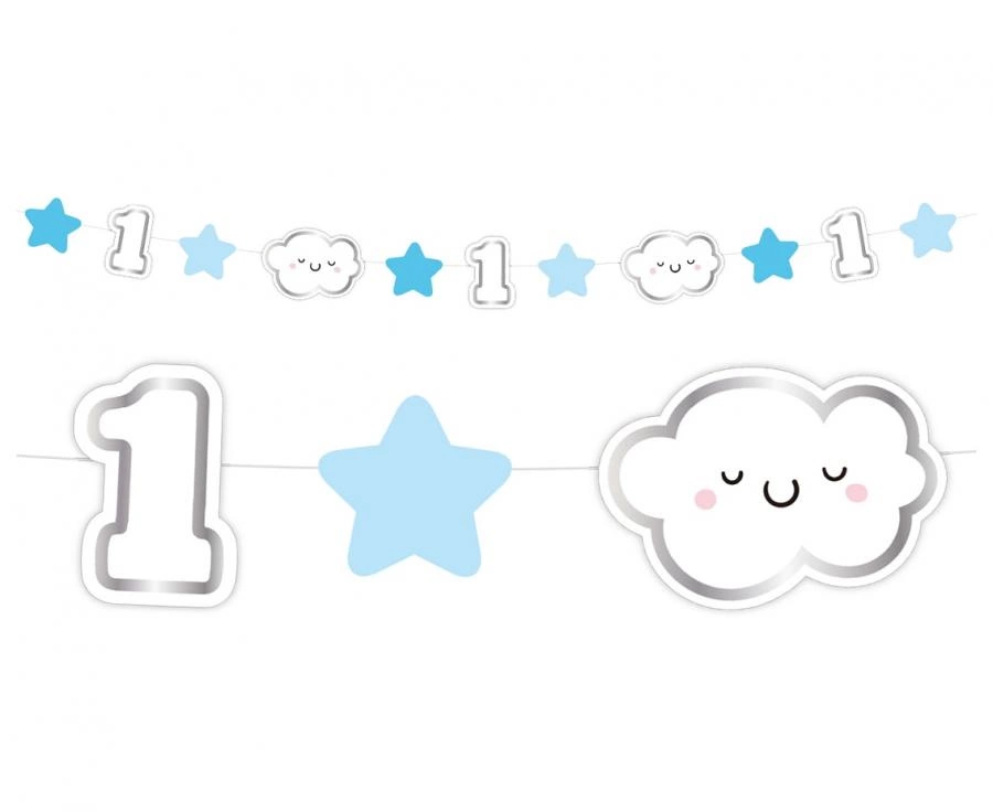 Girlanda papierowa mini Roczek, niebieska, dł. 120 cm, rozm. elementu 8.4 x 6 cm
