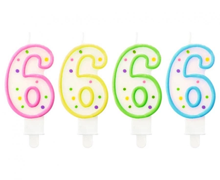 Świeczka cyferka z kropeczkami 6, 7.5 cm