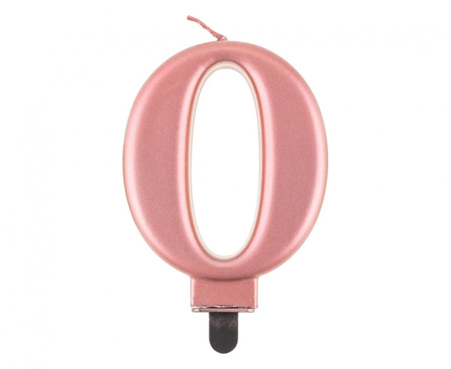 Świeczka cyferka 0, metalik różowo-złota, 8,0 cm