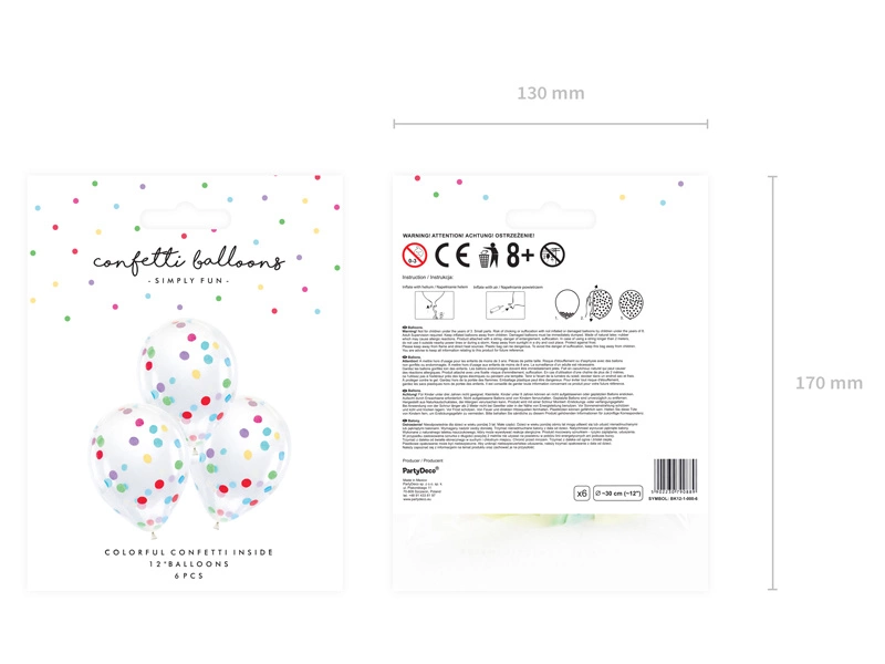 Wprowadź odrobinę czaru na każdą imprezę dzięki naszym transparentnym balonom wypełnionym kolorowym konfetti! Te balony o średnicy 30 cm to doskonały wybór na wesela, wieczory panieńskie, urodziny, Halloween, baby shower, Boże Narodzenie, Walentynki i wiele innych okazji. W opakowaniu znajduje się 6 sztuk, co pozwala na stworzenie efektownej dekoracji.