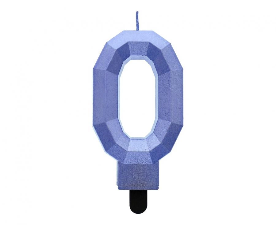 Świeczka cyferka 0 - Diament, metalik ciemnoniebieski, 7.6 cm