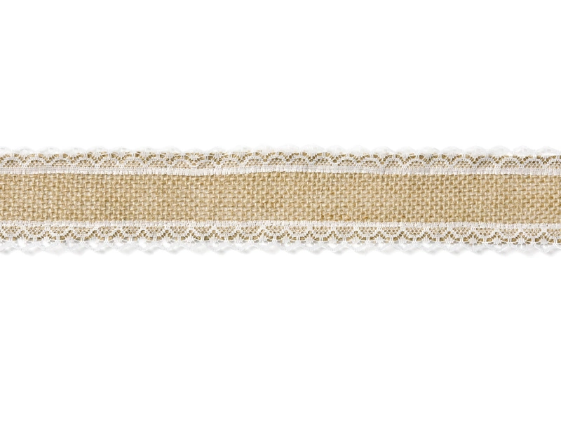 - Taśma jutowa z białą koronką, szerokość ok. 5 cm, długość ok. 5 m.