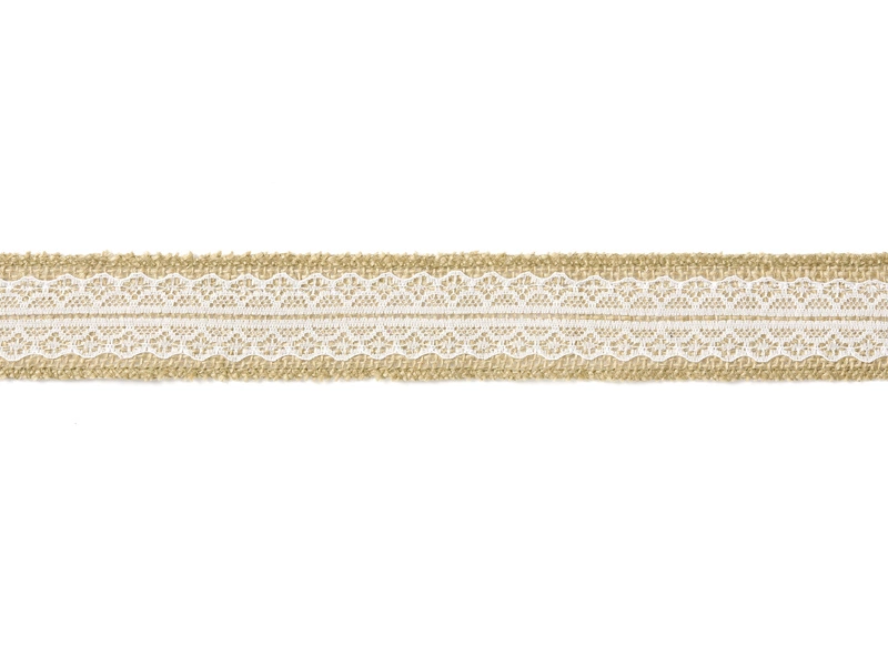 - Taśma jutowa z białą koronką, szerokość ok. 4 cm, długość ok. 5 m.