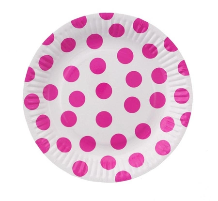 Talerzyki pap. białe, Groszki magenta, 18 cm, 6 szt.