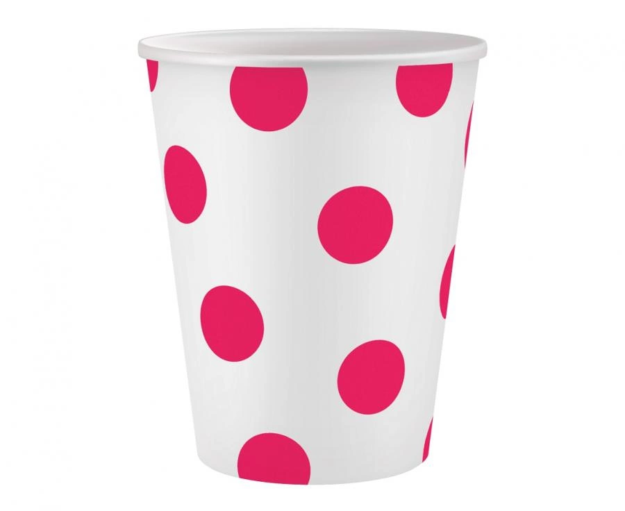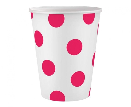 Kubeczki pap. białe, Groszki magenta, certyfikat FSC, 250 ml, 6 szt.