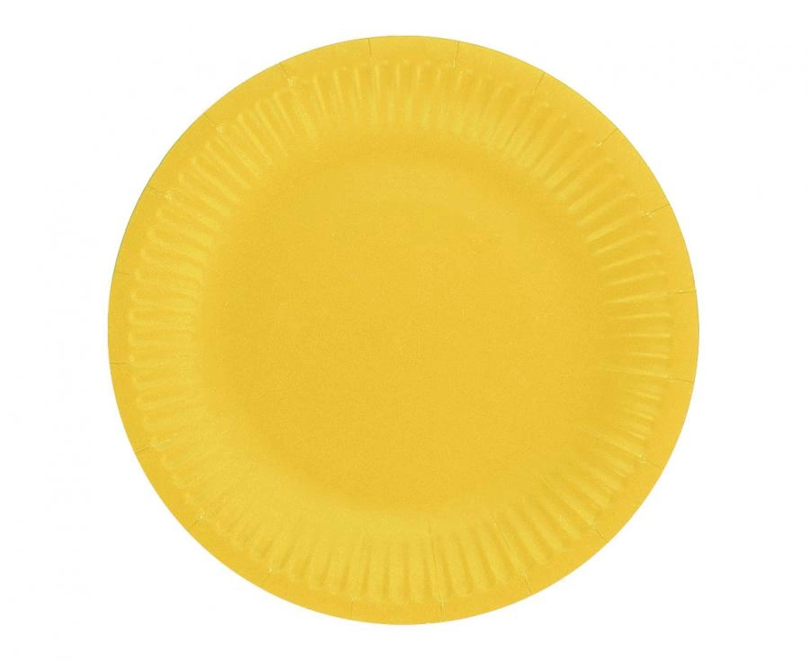 Talerzyki papierowe jednokolorowe w intensywnym żółtym kolorze o średnicy 18 cm. Zestaw 6 sztuk od GoDan S.A. Przeznaczone do serwowania przekąsek, ciast i sałatek na imprezach takich jak urodziny, baby shower, piknik czy wieczór panieński.