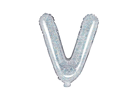 - Balon foliowy holograficzny Litera ''V'' w kolorze holograficznym, wysokość ok. 35 cm (14'').