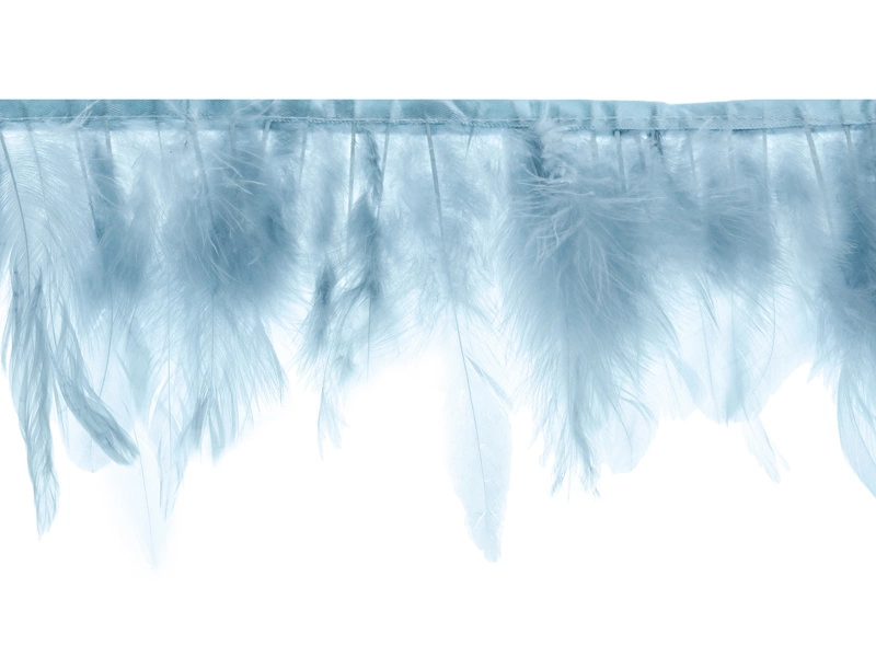 - Girlanda z piór w kolorze jasnomglistoniebieskim, wysokość ok. 17 cm, długość ok. 1 m.