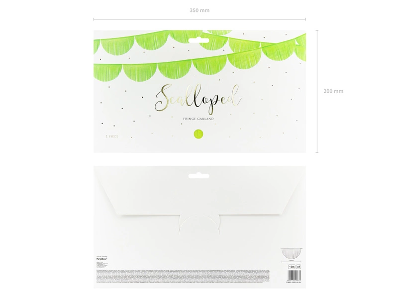 Nie czekaj dłużej! Wzbogać swoje wydarzenie o girlandę bibułową Frędzle w kolorze zielonego jabłuszka i spraw, aby każda chwila była wyjątkowa. Ta piękna i łatwa w użyciu dekoracja z pewnością doda blasku i koloru Twojej imprezie!