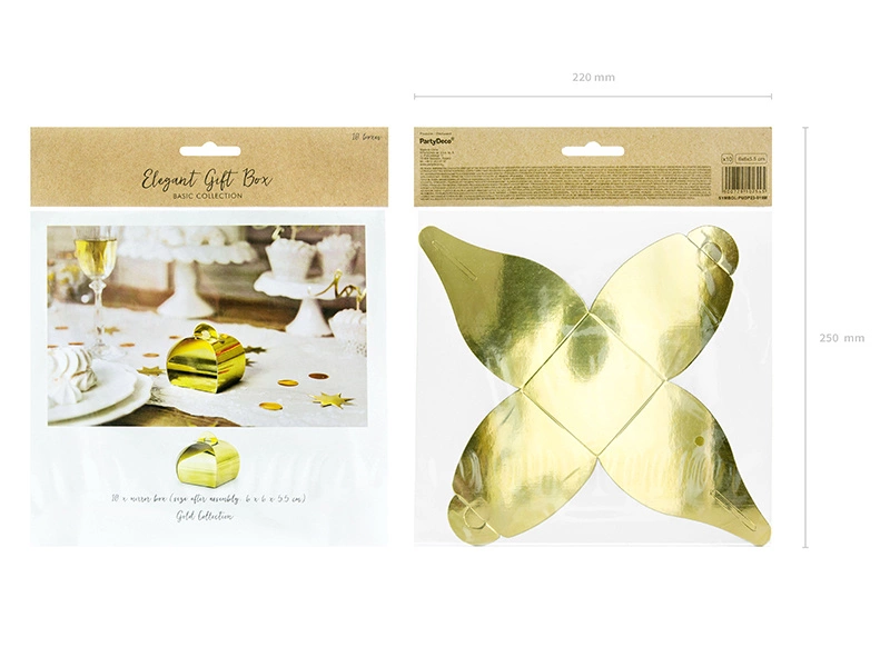 - Pudełeczka wykonane ze złotego lustrzanego papieru, wymiary ok. 6 x 6 x 5,5 cm. (1 op. / 10 szt.)