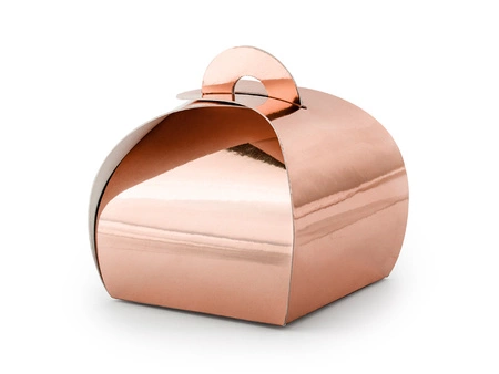 - Pudełeczka wykonane z lustrzanego papieru w kolorze różowego złota, wymiary ok. 6 x 6 x 5,5 cm. (1 op. / 10 szt.)