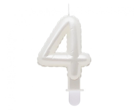 Świeczka cyferka 4, perłowa biała, 7 cm