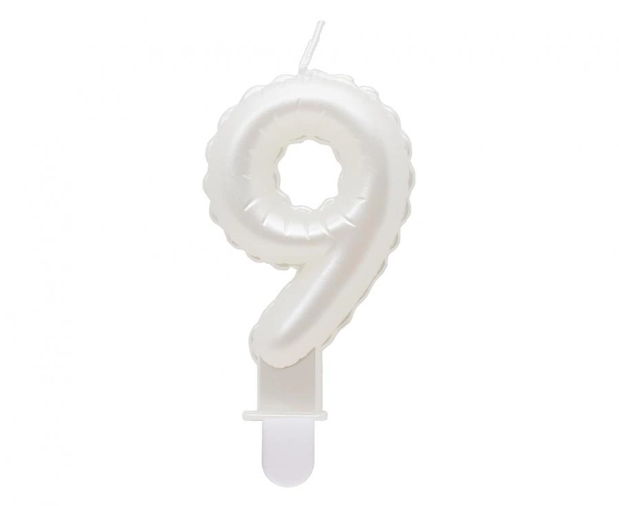 Świeczka cyferka 9, perłowa biała, 7 cm