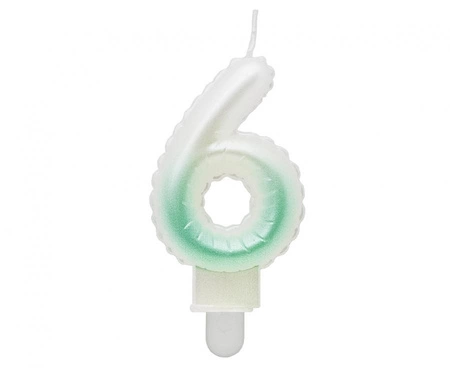 Świeczka cyferka 6, ombre, perłowa biało-zielona, 7 cm