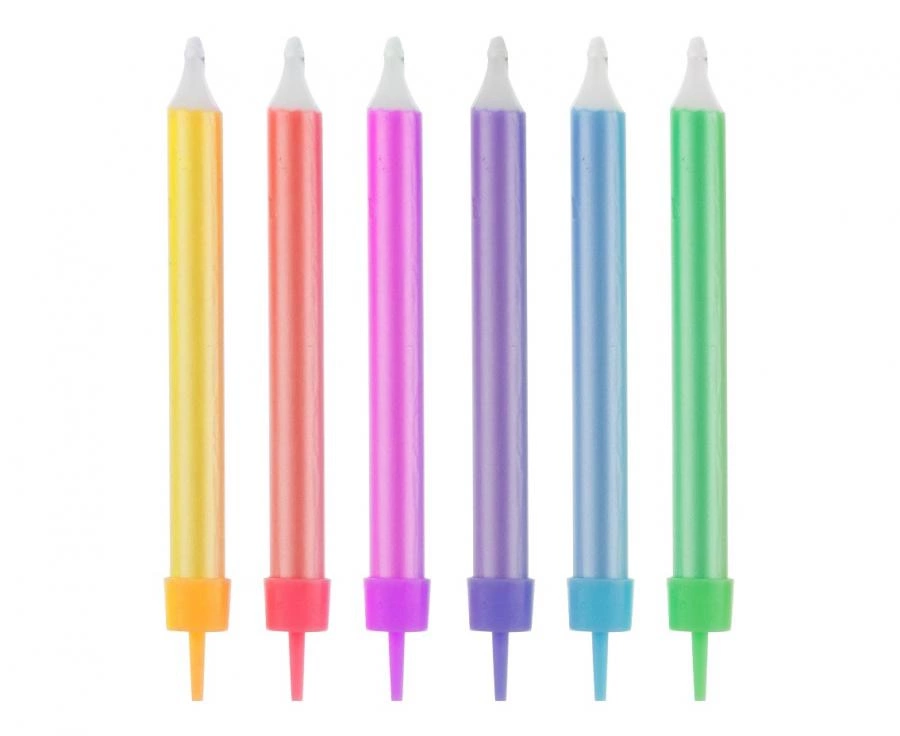12 sztuk w opakowaniu • bezpieczne, nie dymią i nie kapie • intensywne perłowe kolory • idealne na torty urodzinowe • producent: Godan S.A.