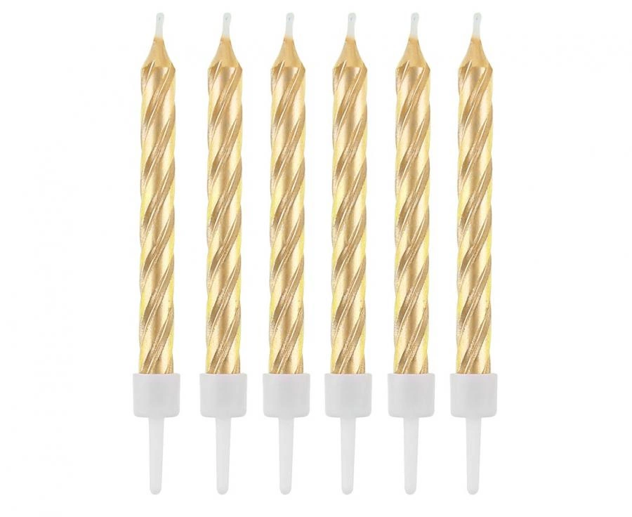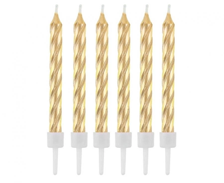 Świeczki z podstawkami, zakręcone złote, 8 cm, 12 szt.