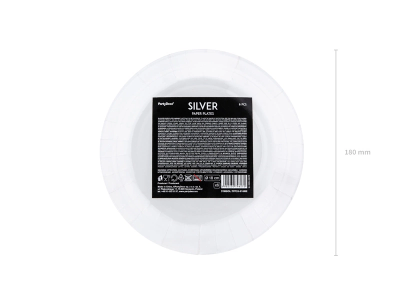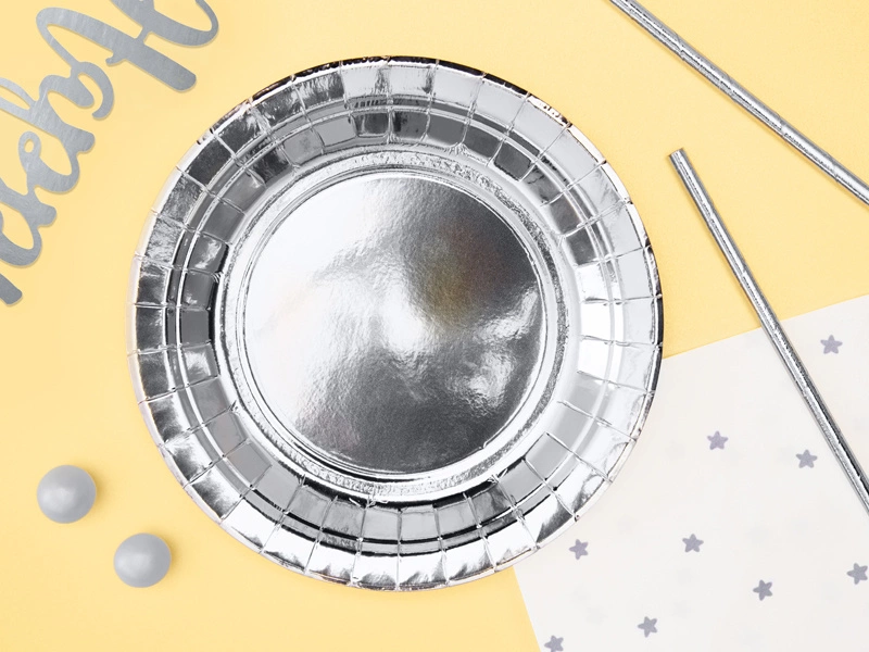 - Talerzyki papierowe srebrny, średnica ok. 18 cm (1 op. / 6 szt.)