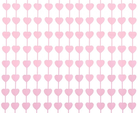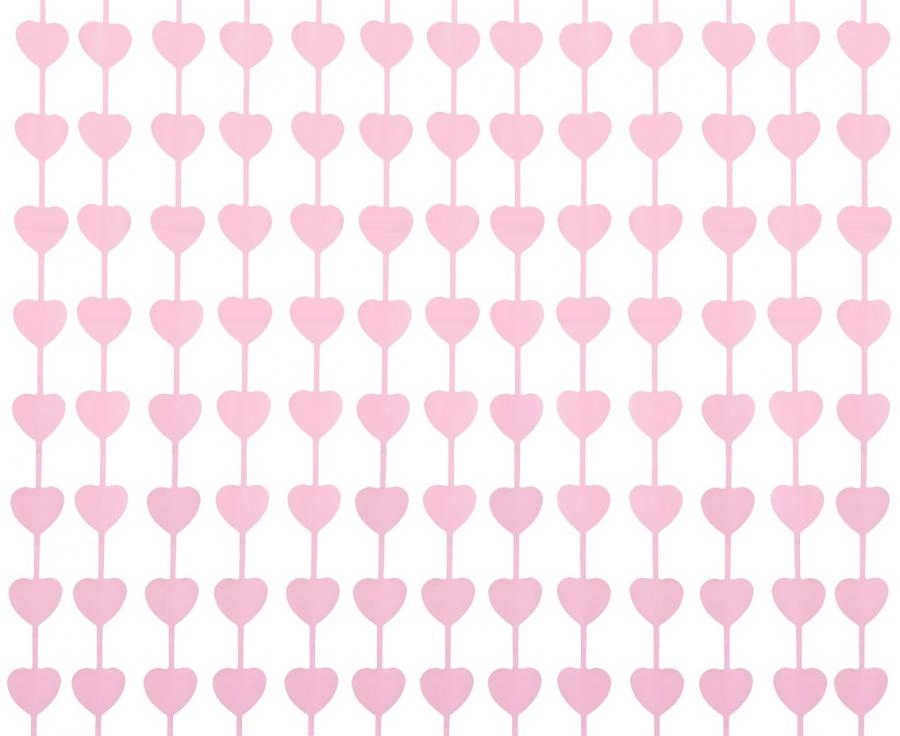 Kurtyna Macaron Serca to jasnoróżowa dekoracja z folii o wymiarach 100 x 200 cm. Przeznaczona jako tło do zdjęć, ozdoba wejścia lub ściany podczas wesela, wieczoru panieńskiego, urodzin, baby shower czy Walentynek. Jedna sztuka w opakowaniu, łatwa do zawieszenia i przechowywania.