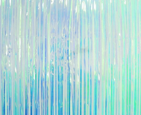 Kurtyna opalizująca o wymiarach 100×200 cm, wykonana z folii w opalizującym błękitnym kolorze. Przeznaczona jako szybkie tło dekoracyjne do ścianek foto, stoisk i narożników imprezowych na wesela, wieczory panieńskie, urodziny, baby shower czy świąteczne aranżacje. Lekka, łatwa do zawieszenia.