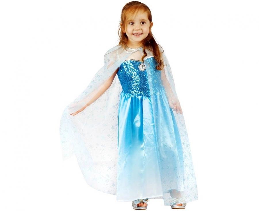 Idealny strój dla małych księżniczek • Ozdobiona cekinami sukienka • W komplecie piękna peleryna • Komfort noszenia dzięki miękkiej tkaninie • Idealna na urodziny i bal przedszkolaka