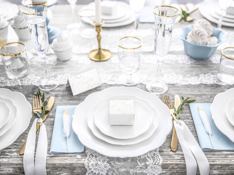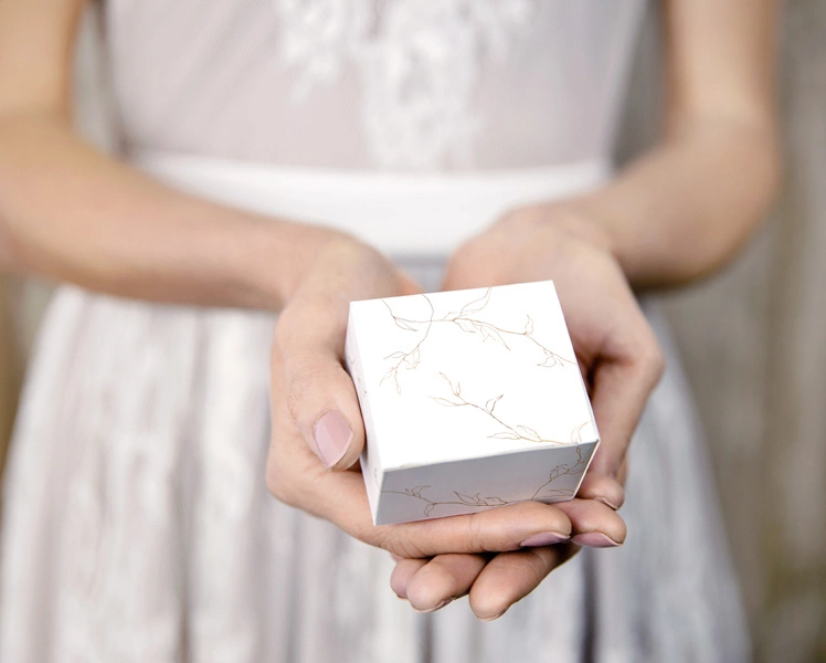 Wprowadź odrobinę elegancji i wyjątkowego uroku na swoje wydarzenia dzięki naszym białym pudełeczkom ozdobionym złotymi gałązkami. Idealne na wesela, wieczory panieńskie, urodziny, baby shower, Boże Narodzenie, Walentynki i wiele innych okazji. Te stylowe pudełeczka to doskonały sposób na zapakowanie drobnych upominków dla gości, które na długo pozostaną w ich pamięci.